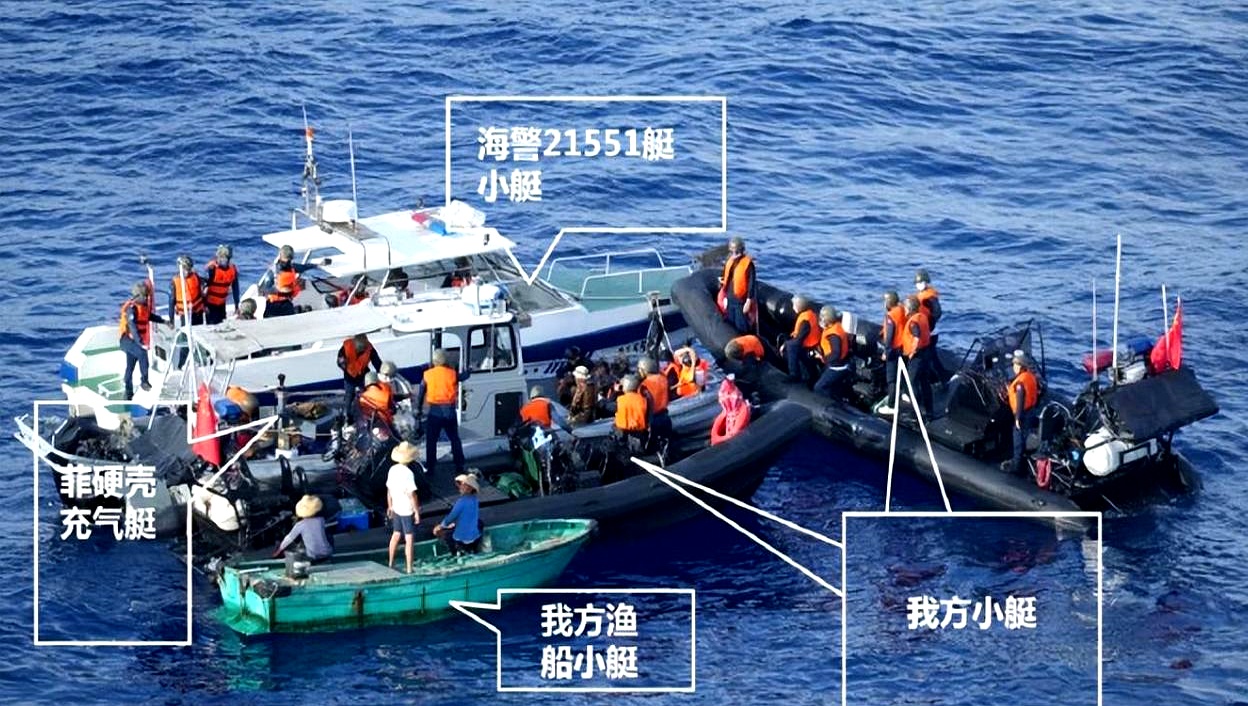 2025年10月,菲律宾民间船试图靠近仁爱礁,刚进入12海里范围就被中国海警船拦停。