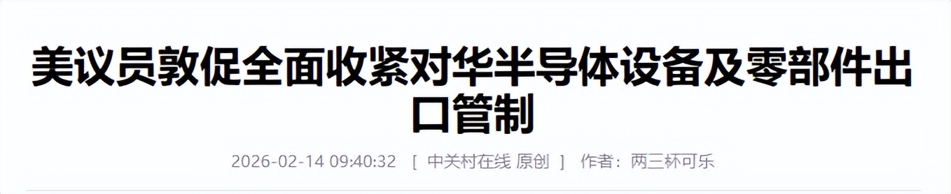 2026年2月10日,美国众议院几个关键委员会的主席联名给国务卿和商务部长写了封信,核心诉求就一个:把限制范围扩大到所有中国造不出来的设备,不管它是造先进芯片的还是造家电芯片的。