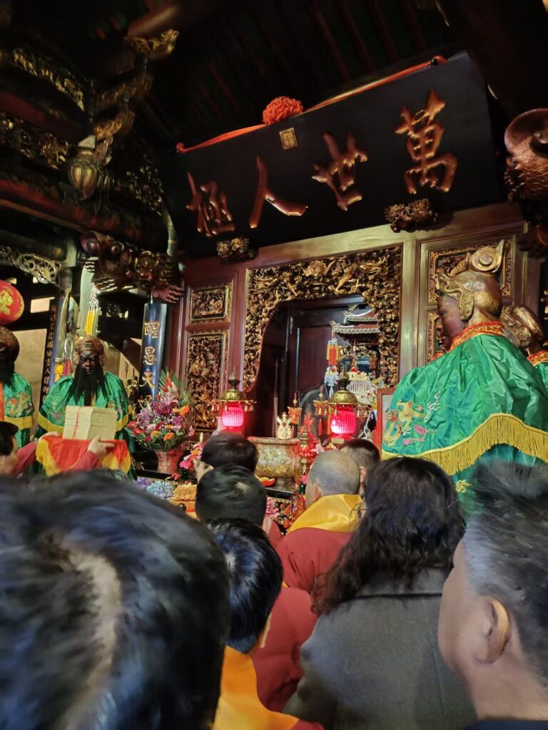 东山关帝庙,自唐陈元光开漳引关公香火入闽,明洪武二十年正式建庙,六百余年风雨兼程,既藏闽南古建筑的精巧神韵,又系两岸同胞的精神纽带。这座被誉为“关帝文化从大陆走向台湾乃至世界的码头”的古建,飞檐斗拱间藏金木雕、石雕的匠心,彩瓷剪贴中蕴闽地工艺的精妙,咸丰御笔“万世人极”匾额熠熠生辉,黄道周手书楹联字字铿锵,更因是台湾近千座关帝庙的香缘祖庙,成为两岸文化同根同源的最佳见证 。岁月侵蚀之下,此次修缮恪守“修旧如旧、活化传承”准则,循古法工艺复原建筑原貌,精心守护太子亭、青石龙陛、殿顶剪瓷雕等珍贵遗存,让这座承载着两岸信众虔诚信仰的古祠,在匠心雕琢中重归庄严。大典之上,依传统礼序行祭祀之仪,钟鼓声声穿越山海,两岸信众共拜关圣,三揖三叩的虔诚里,是对忠义仁勇精神的共同敬仰,更是两岸同胞血浓于水的深情联结。数百年来,台湾关帝庙随戍垦移民、商贸往来从东山分灵挂香,祖庙修茸,台胞更是屡屡踊跃捐资,此番古祠焕新,更让这份跨越海峡的香缘与乡情,在仪式中愈发醇厚 。