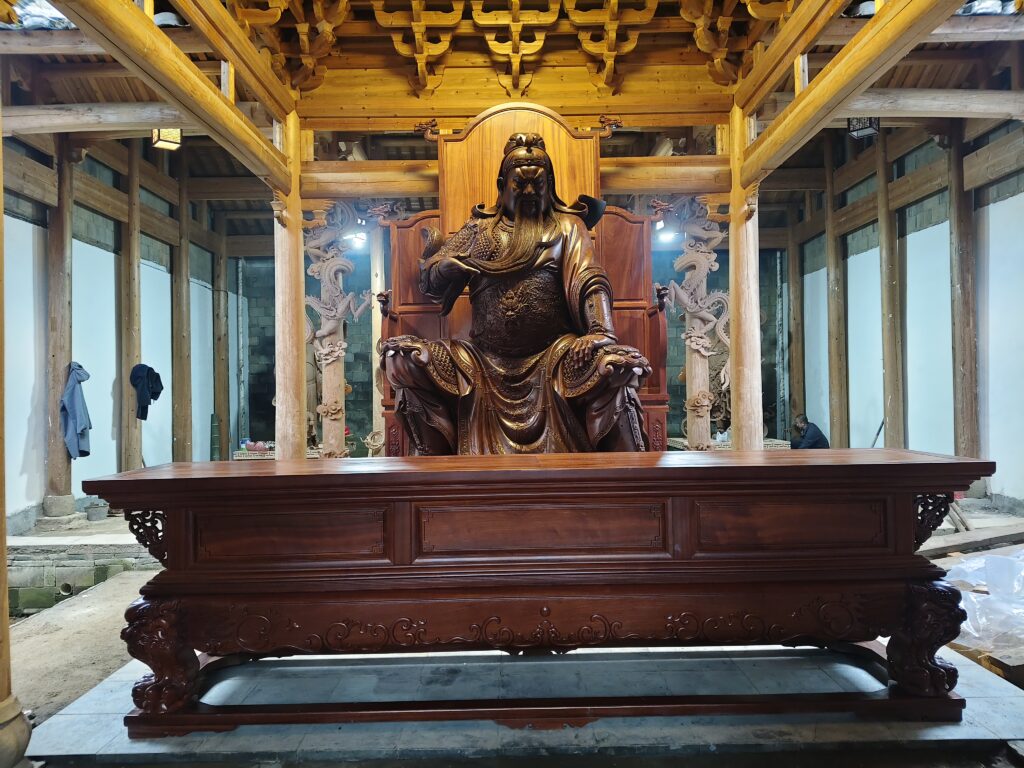 这尊关帝像的风骨和雕工气度雕琢得如是真神显现,这背后,承载着国家非遗传承人中国莆田木雕大师吴文忠的精湛技艺。